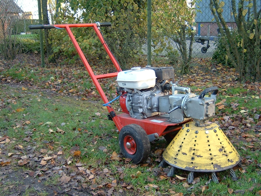 WURFF. TYPE: SB43DS, EEN 4-TAKT HONDA BENZINE MOTOR VAN 5,5 PK. GEBRUIKTE MACHINE. MET 12 VASTE BORSTELS. SNEL WISSEL SYSTEEM.