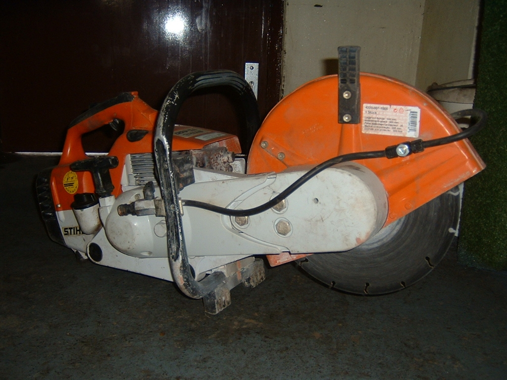 STIHL. TYPE: TS400, EEN 2-TAKT BENZINE MOTOR VAN 67 CC EN 4,4 PK. GEBRUIKTE MACHINE.MET EEN 300CM DOORSLIJPSCHIJF. MET WATERSET.